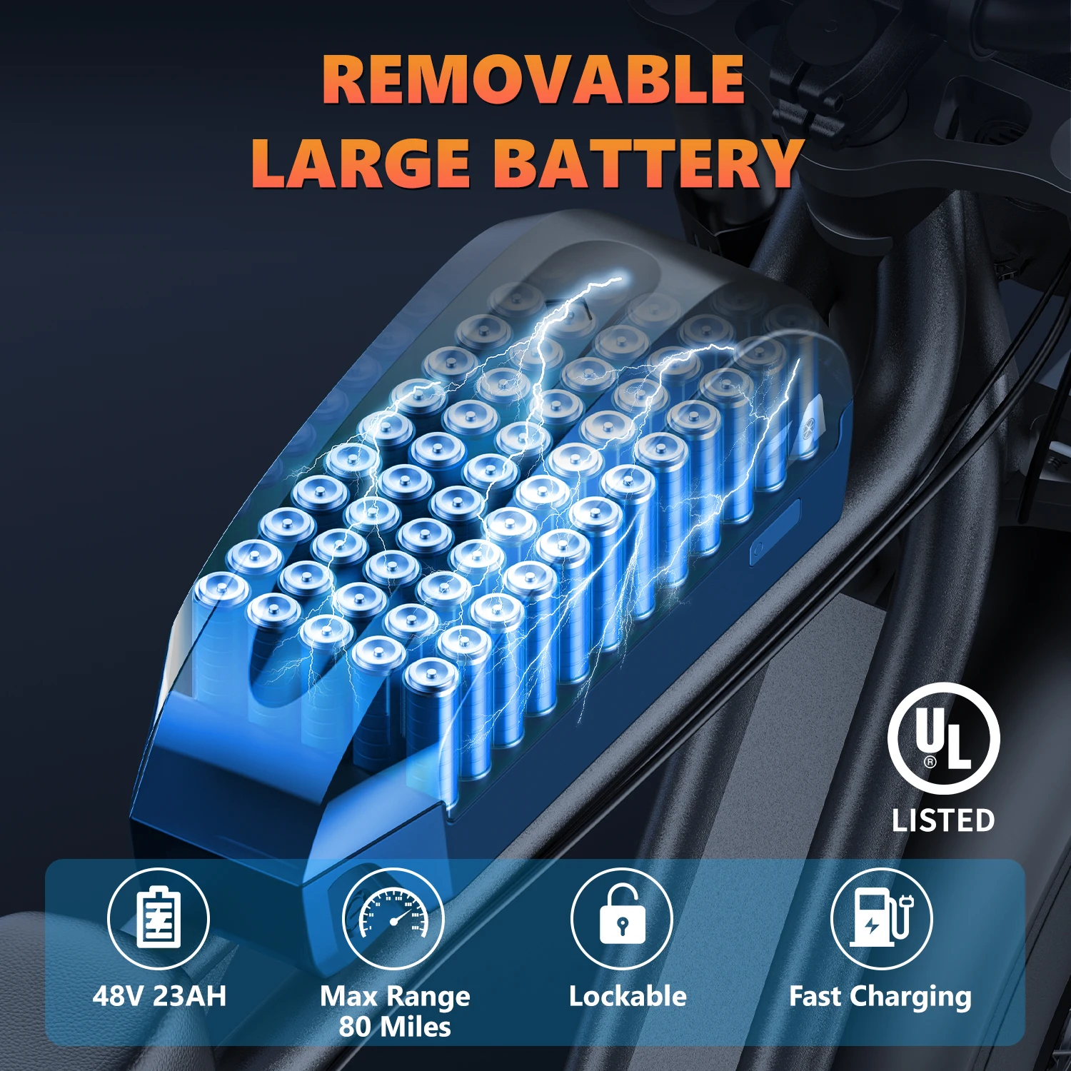 This powerful electric bike is built for riders who need strong performance on any terrain. Its 1500W motor delivers fast acceleration and smooth climbing power. The 48V 23Ah battery offers extended riding range for long adventures. With 20-inch fat tires, the bike provides excellent stability and traction on rough, sandy, or snowy surfaces. The 7-speed system allows you to adjust your ride for hills, cruising, or speed. A top speed of up to 32MPH gives you the freedom to travel quickly and efficiently. The sturdy frame supports reliable handling on both city roads and mountain trails. Comfortable seating helps reduce fatigue on longer rides. Easy-to-use controls make switching between power modes simple and intuitive. This electric bike is ideal for commuting, off-road exploration, and recreational riding.