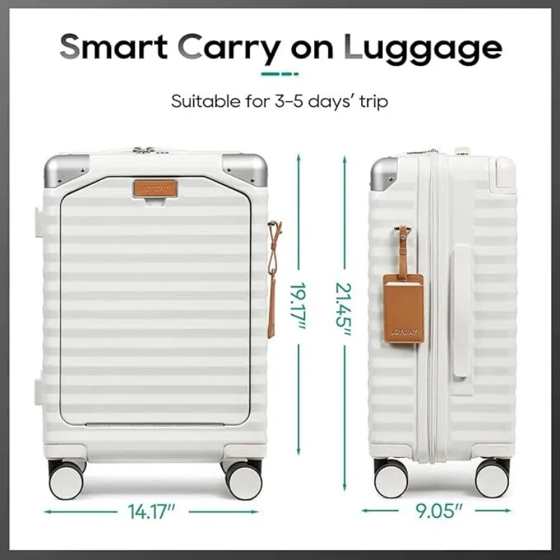 The Joyway 20-inch carry-on luggage is designed for modern travelers who value convenience and style. Its front-opening design allows easy access to your belongings without fully opening the suitcase. A built-in cup holder keeps your drink secure while navigating airports. TSA-approved lock ensures your items remain safe and secure throughout your journey. Mute spinner wheels provide smooth, silent 360-degree maneuverability for effortless rolling. The lightweight yet durable construction makes it easy to carry without sacrificing strength. Interior compartments help keep your clothes and essentials organized. Sleek design combines practicality with a professional, modern look. Perfect for short trips, business travel, or weekend getaways. This suitcase offers a smart blend of convenience, durability, and style for stress-free travel.