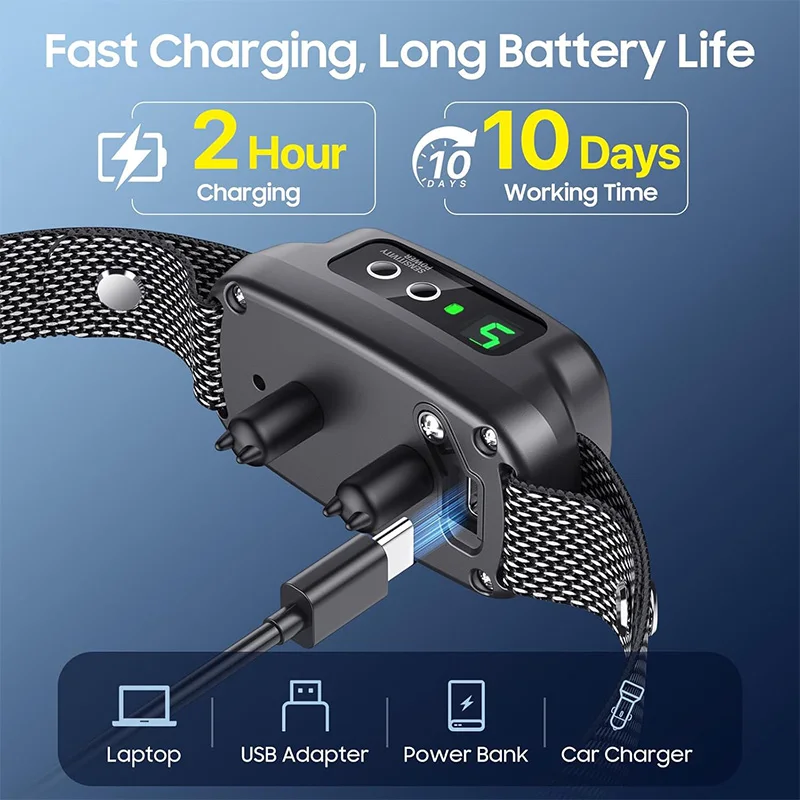 This smart dog bark control collar is designed to help manage excessive barking effectively. Features IP67 waterproof design for safe outdoor use in all weather conditions. Includes sound recognition system to detect barking accurately. Multiple correction modes offer sound, vibration, and shock functions. Adjustable straps ensure a comfortable fit for different dog sizes. The color screen allows easy control and monitoring of settings. Ideal for training, behavior correction, or calming anxious dogs. Lightweight and durable for daily wear. Helps reinforce positive behavior without harming your pet. Combining technology, safety, and convenience, this collar is perfect for responsible pet owners seeking effective bark control.