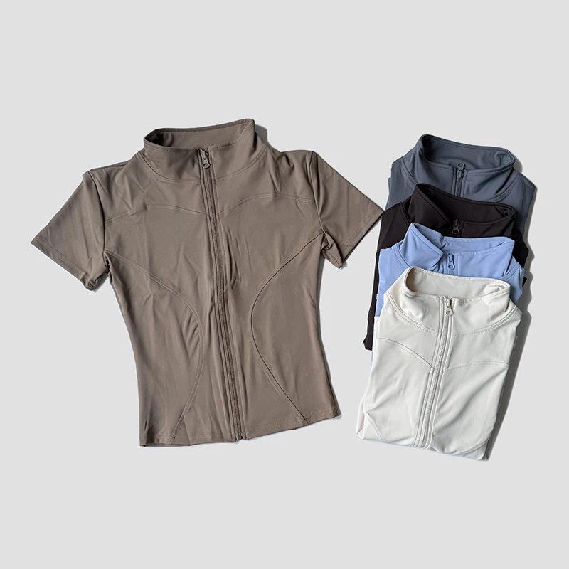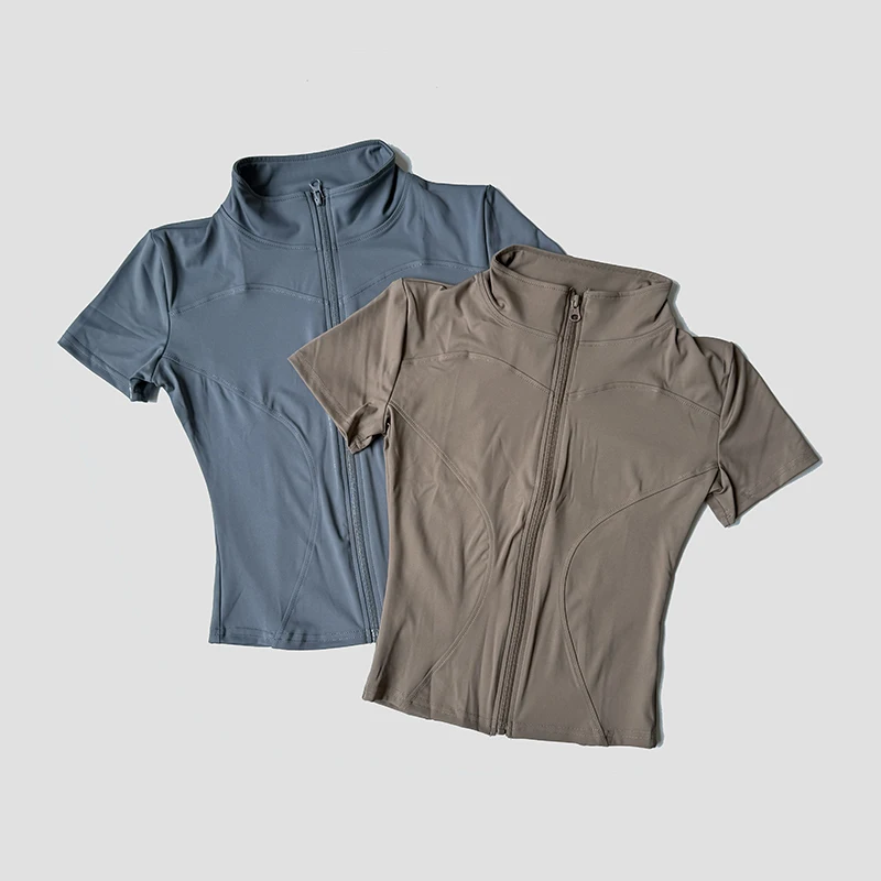 Short sleeves provide freedom of movement during workouts.